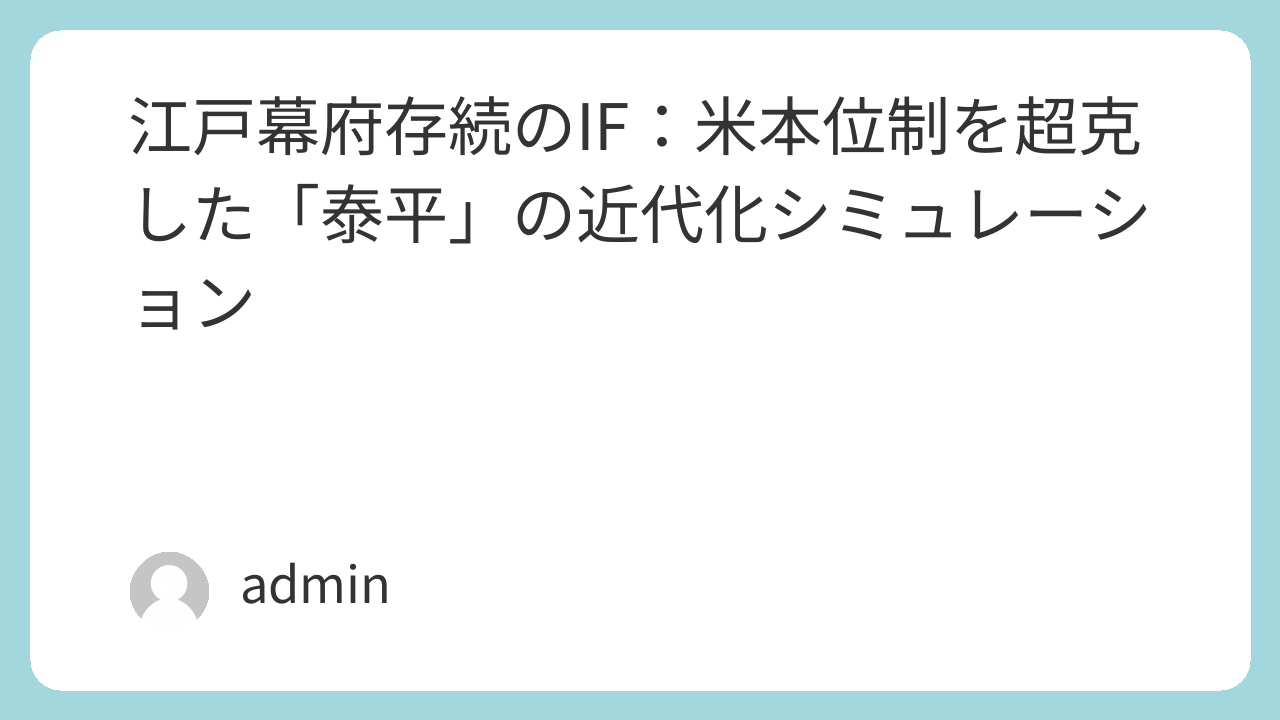 江戸幕府存続のIF:米本位制を超克した「泰平」の近代化シミュレーション