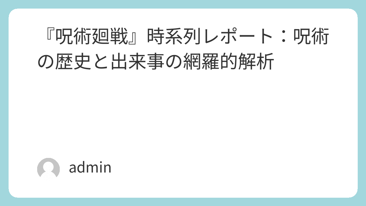 『呪術廻戦』時系列レポート:呪術の歴史と出来事の網羅的解析
