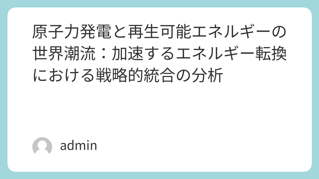 原子力発電と再生可能エネルギーの世界潮流:加速するエネルギー転換における戦略的統合の分析