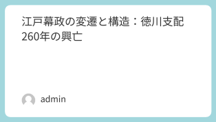 歴史 江戸幕政の変遷と構造:徳川支配260年の興亡 江戸幕政の変遷と構造:徳川支配260年の興亡序章:報告の目的と構成本報告は、「江戸時代の幕政の流れ」を、単なる歴史的事実の羅列に留めることなく、その政治体制がどのように構築され、内部にどのような矛盾を抱え、最終的に終焉を迎えたのかを、構造的... 歴史