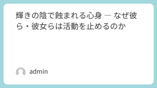 MUSIC 輝きの陰で蝕まれる心身 ― なぜ彼ら・彼女らは活動を止めるのか 輝きの陰で蝕まれる心身 ― なぜ彼ら・彼女らは活動を止めるのか序論:輝きの陰で蝕まれる心身 ― なぜ彼ら・彼女らは活動を止めるのか近年、K-POPアイドル、日本のアイドル、そして俳優といったエンターテインメント業界の第一線で活躍するアーティ... MUSIC時事